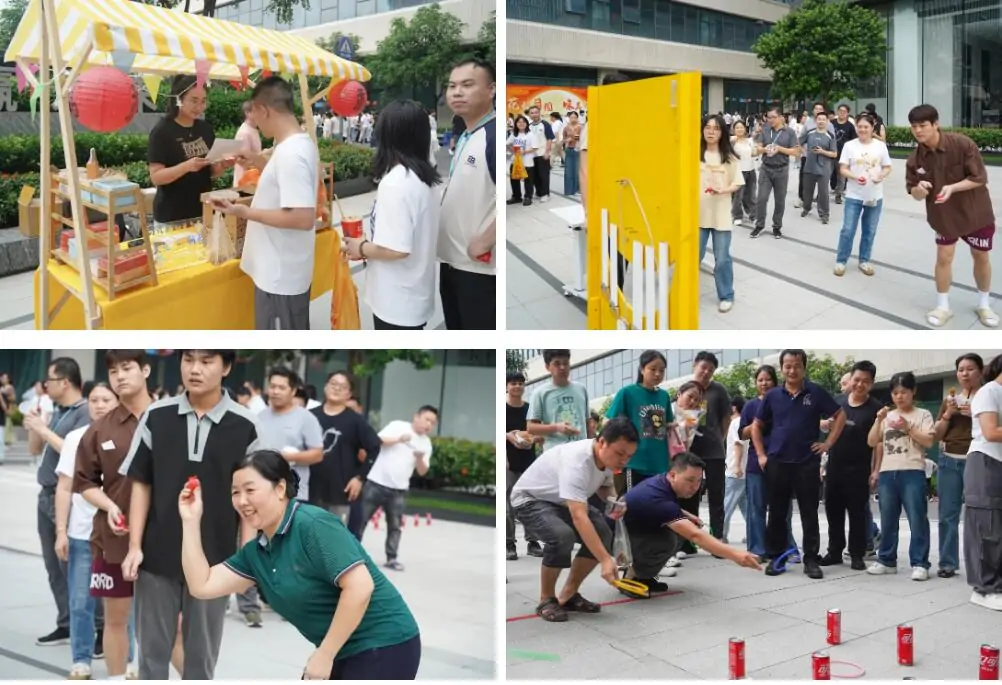 除了美食享受,活动现场还特设了企业文化特色展位与互动游戏区,让员工在参与趣味游戏如“套圈圈”、“打掉大牙”、“文化问答”的过程中,不仅能赢取美食兑换券,还能深入体验企业文化的独特魅力。现场欢声笑语此起彼伏,气氛热烈异常,吸引了众多员工的热情参与。